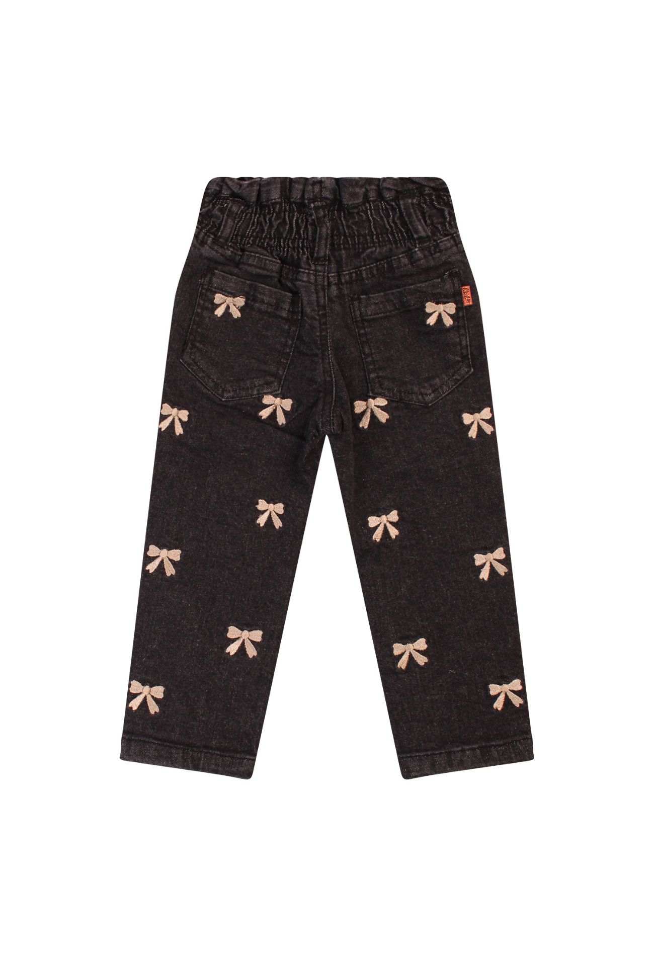 Trendy jeans met geborduurde strikjes voor een speelse touch. Het model heeft een paperbag-taille, waardoor hij mooi aansluit en tegelijk comfortabel zit. Perfect te combineren met een simpel topje of blouse.