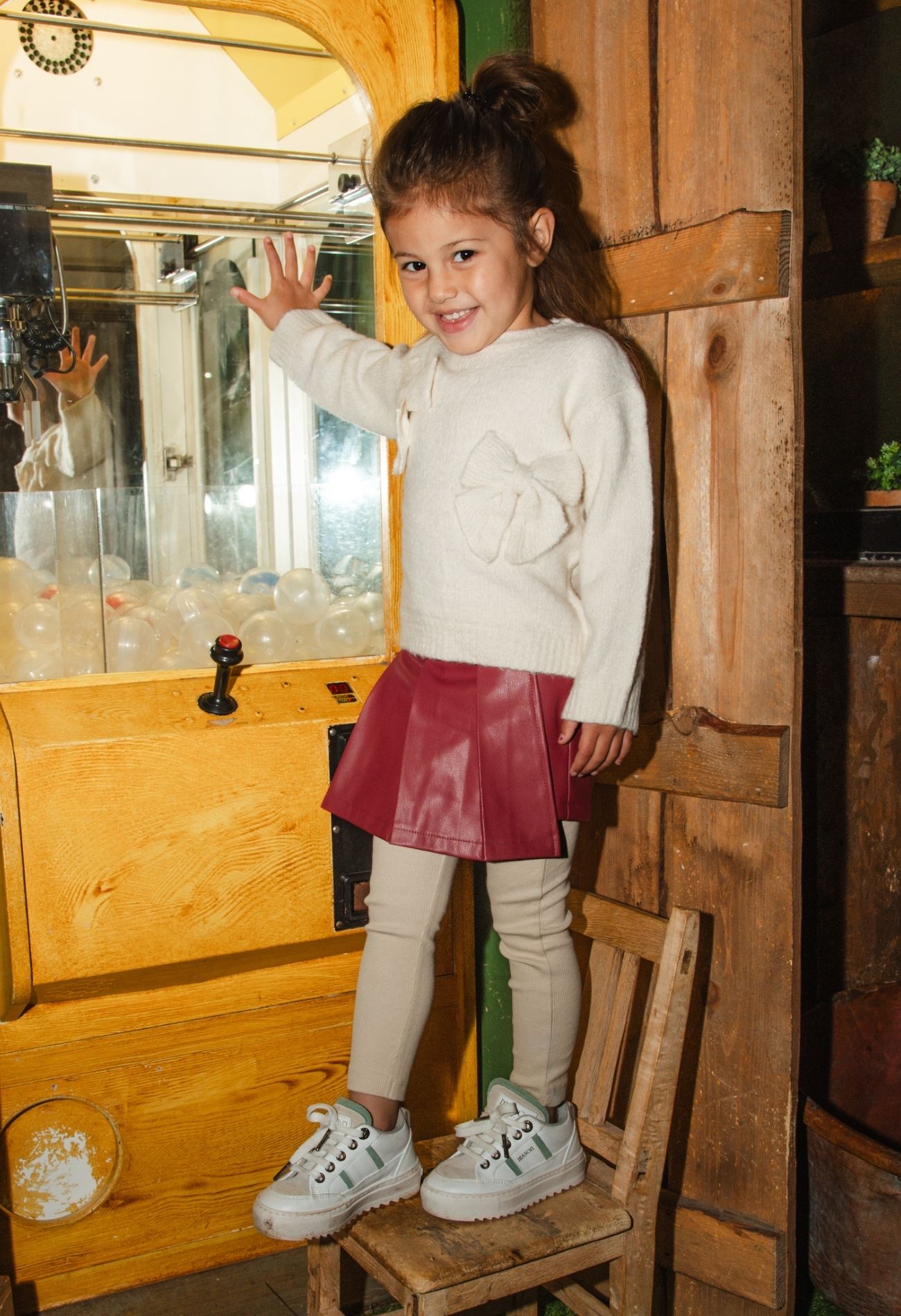 Deze schattige PU skort is een speelse combinatie van een rokje en een broekje, speciaal ontworpen voor baby meisjes. De geplooide voorkant geeft het skortje een klassieke uitstraling, terwijl de hartvormige buckle zorgt voor een extra lief detail. Dankzij de elastische tailleband aan de achterkant zit het skortje altijd comfortabel en blijft het goed op z'n plek.