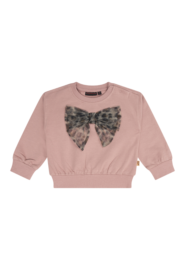 Deze baby meisjes sweater is zacht en comfortabel dankzij de zachte binnenkant. De grote panter mesh strik maakt de sweater extra bijzonder en geeft een speelse, stoere uitstraling. Perfect te combineren met een stoere jeans voor een trendy look.