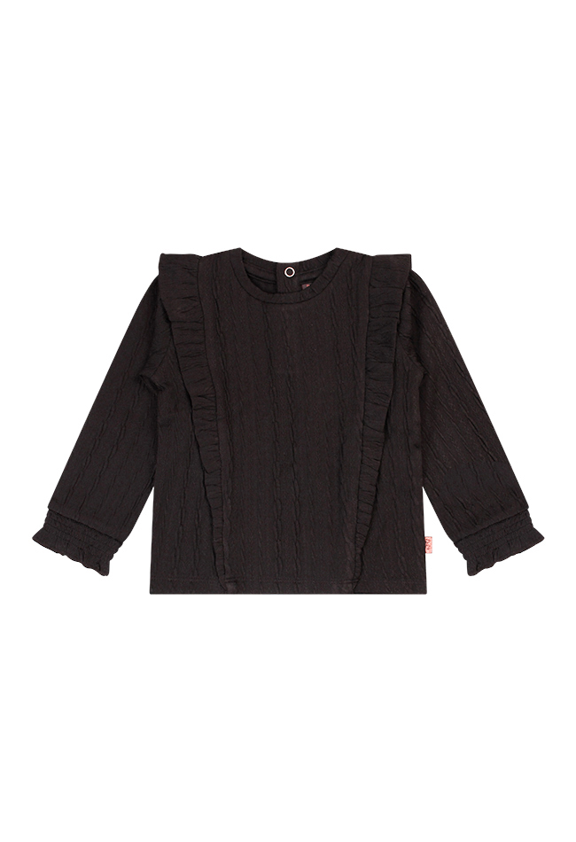 Dit schattige babyshirt is gemaakt van een zachte jacquard stof met een verfijnd werkje, perfect voor een stijlvolle look met een romantisch tintje. De ruches en smockmouwtjes geven het shirt een lieve, klassieke uitstraling. Dankzij de comfortabele pasvorm en zachte materialen is het net zo fijn om te dragen als om naar te kijken. Combineer met een legging of flared broekje voor een complete outfit.