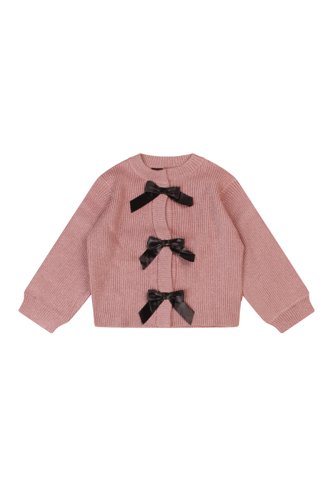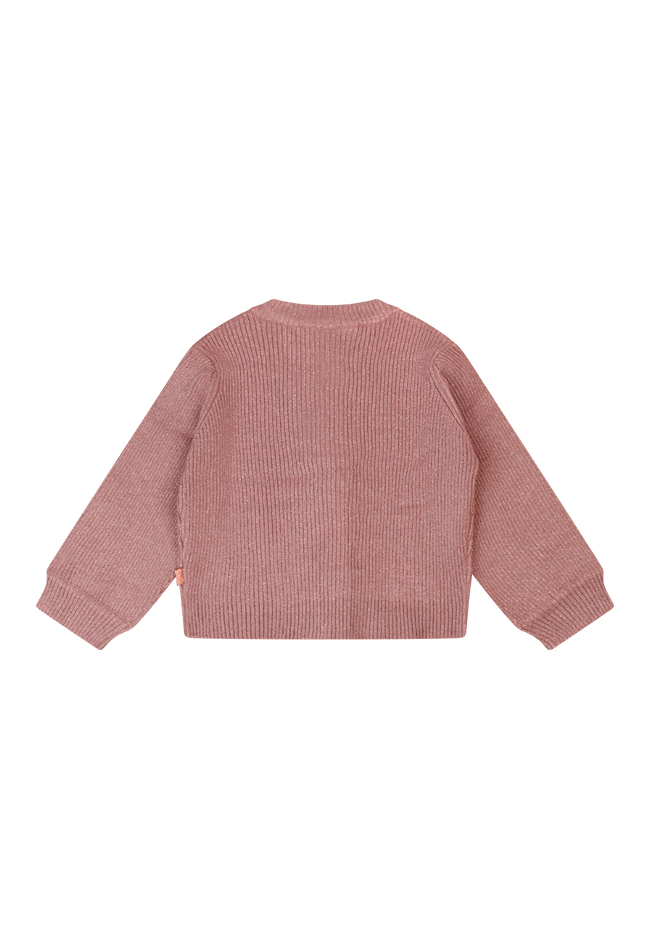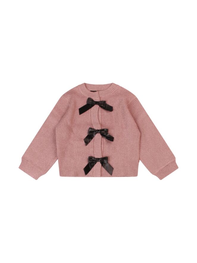 Dit fijngebreide vestje voor baby meisjes combineert zachte warmte met een subtiele glans dankzij het lurexdraad. De ballonmouwen geven een speelse touch, terwijl de drie strikken op de voorkant zorgen voor een lieve en stijlvolle uitstraling.