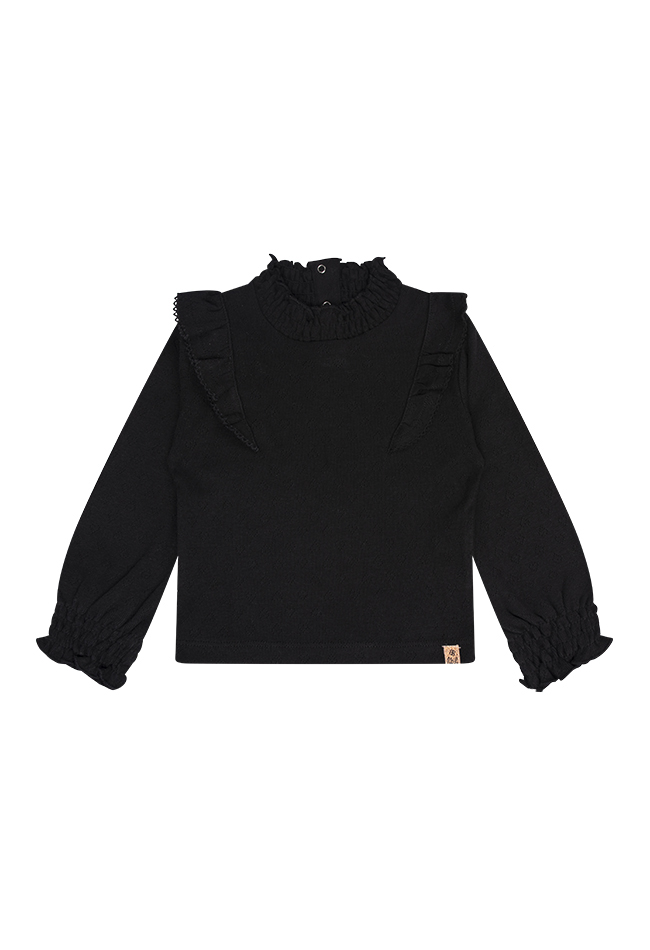 Deze top voor baby meisjes is gemaakt van hartjesajour stof en heeft schattige details zoals smockwerk rond de hals en bij de manchetten. De zachte stof en fijne afwerking maken dit een comfortabel en stijlvol item voor elke dag.
