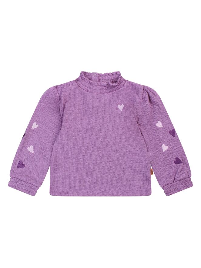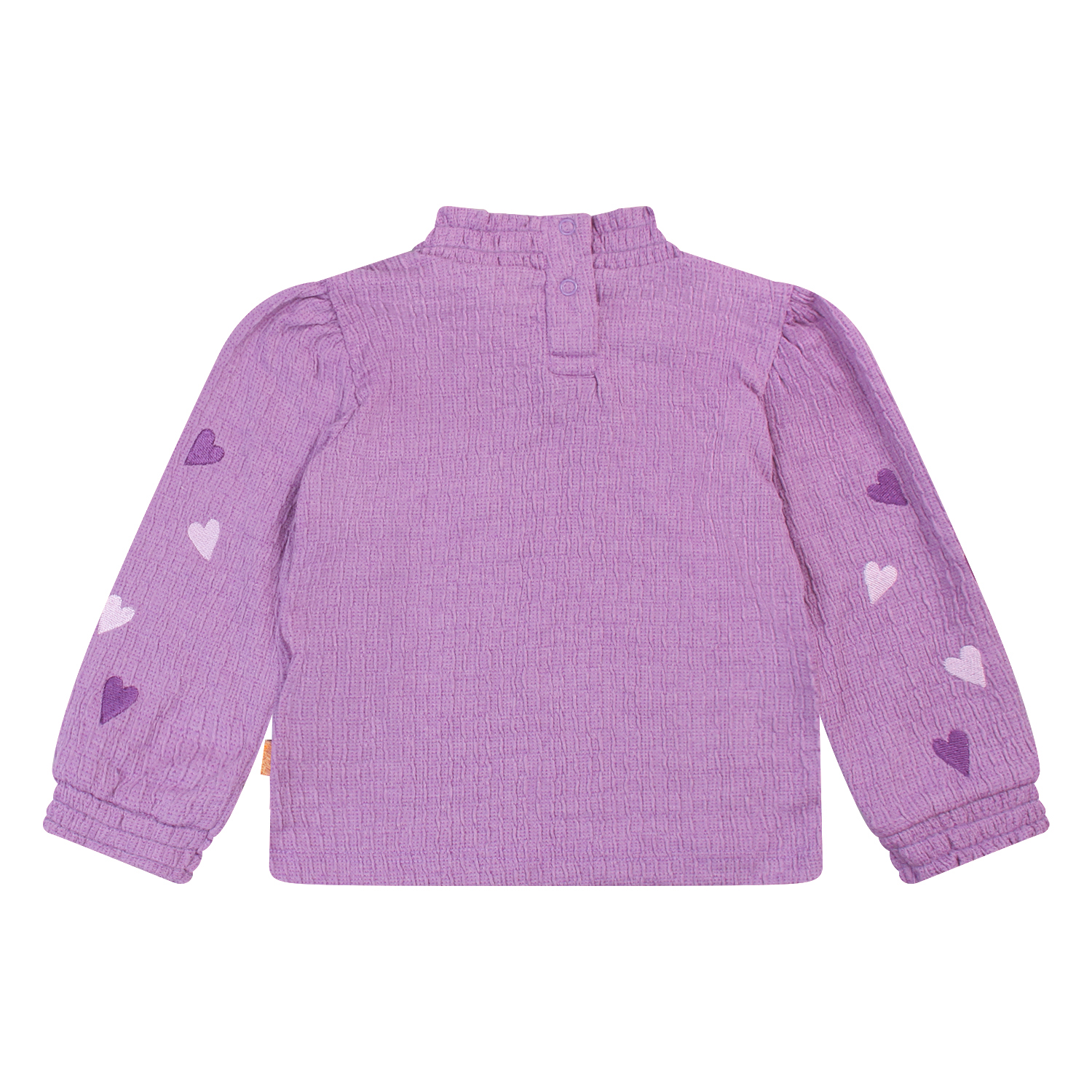 Deze schattige top voor babymeisjes is gemaakt van crincle stof voor een speelse textuur. De smock-afwerking langs de hals en mouwen zorgt voor een elastische, comfortabele pasvorm. Op de mouwen zijn geborduurde hartjes in verschillende kleuren verwerkt, wat de top extra vrolijk maakt.