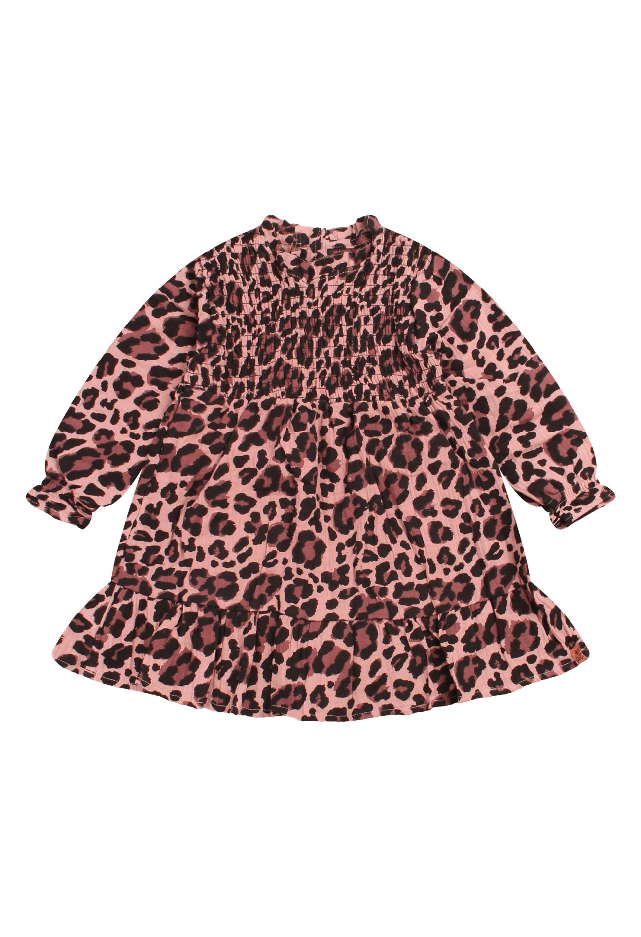 Dit jurkje voor baby meisjes is gemaakt van zachte mousseline en heeft een speels panterdessin. De smockpas en pofmouwtjes zorgen voor een lieve, girly look met een trendy twist. Perfect voor speciale momenten en gewoon om in te stralen.