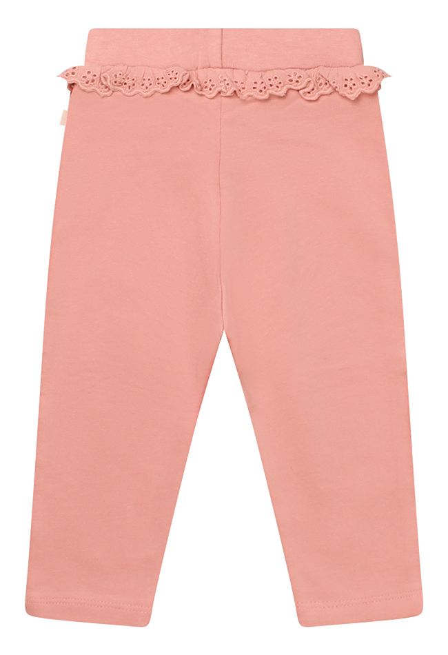 Dit schattige broekje voor babymeisjes is gemaakt van biologisch katoen en voelt heerlijk zacht aan op de gevoelige babyhuid. Het broekje is niet alleen comfortabel, maar ook bewust gekozen voor een duurzamere wereld. Een fijn detail is het kanten randje bij de elastische tailleband, dat zorgt voor een lieve en verfijnde uitstraling.
