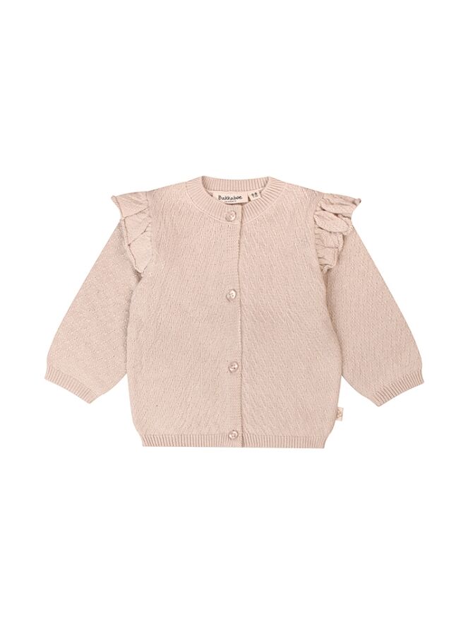 Dit zachte ajourbrei vestje voor newborn babymeisjes is perfect voor een elegante en comfortabele look. Het vestje heeft schattige ruches over de schouder, die een speelse en lieve uitstraling geven. Ideaal voor de eerste outfits van je kleintje!