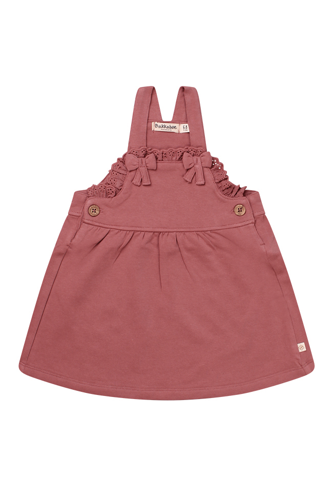 comfortabel voor de allerkleinsten en vriendelijk voor de planeet. Het jurkje heeft een klassieke overgooierstijl, afgewerkt met een broderie ruche langs de halsen een lief strikje op de voorkant. Perfect te combineren met een romper of shirtje voor een complete en knusse outfit.