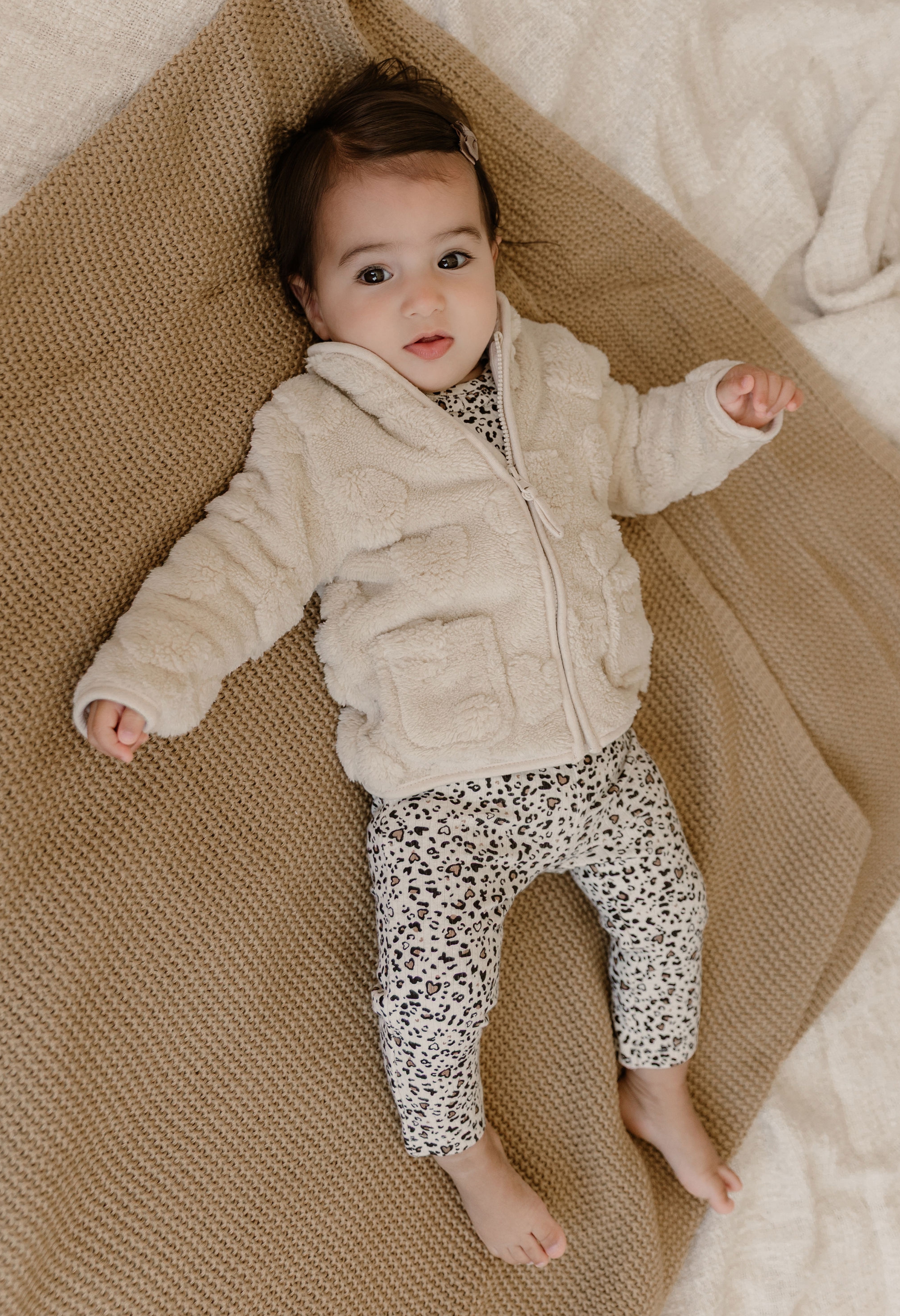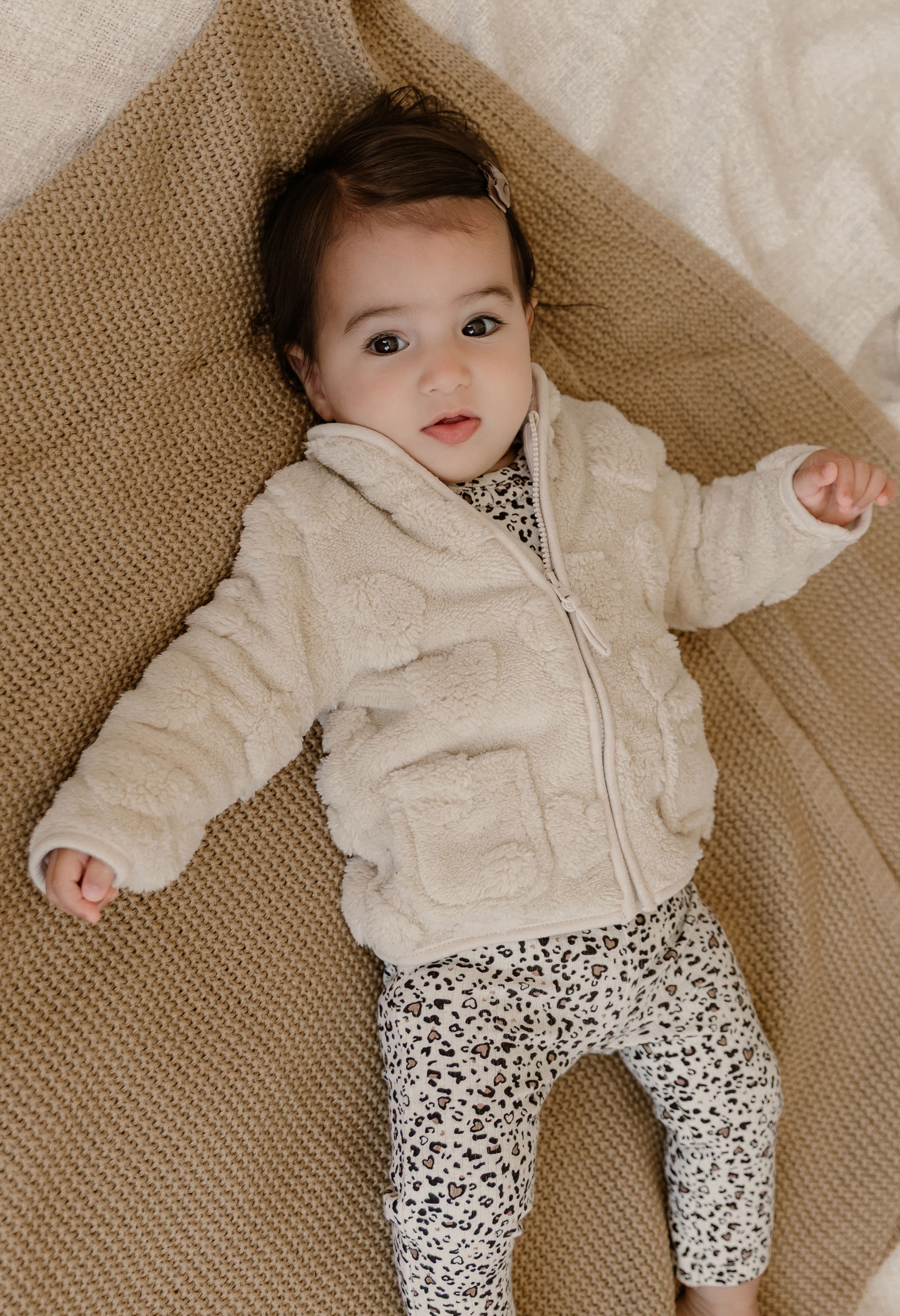 Hoe lief wil je het hebben?! Deze teddy jas met zachte hartjesprint is echt een droom voor jouw kleine meisje. De fluffy stof voelt heerlijk aan en dankzij de warme voering blijft je mini heerlijk knus. Perfect voor frisse wandelingen, en met zo?n cute look steelt ze ieders hart!