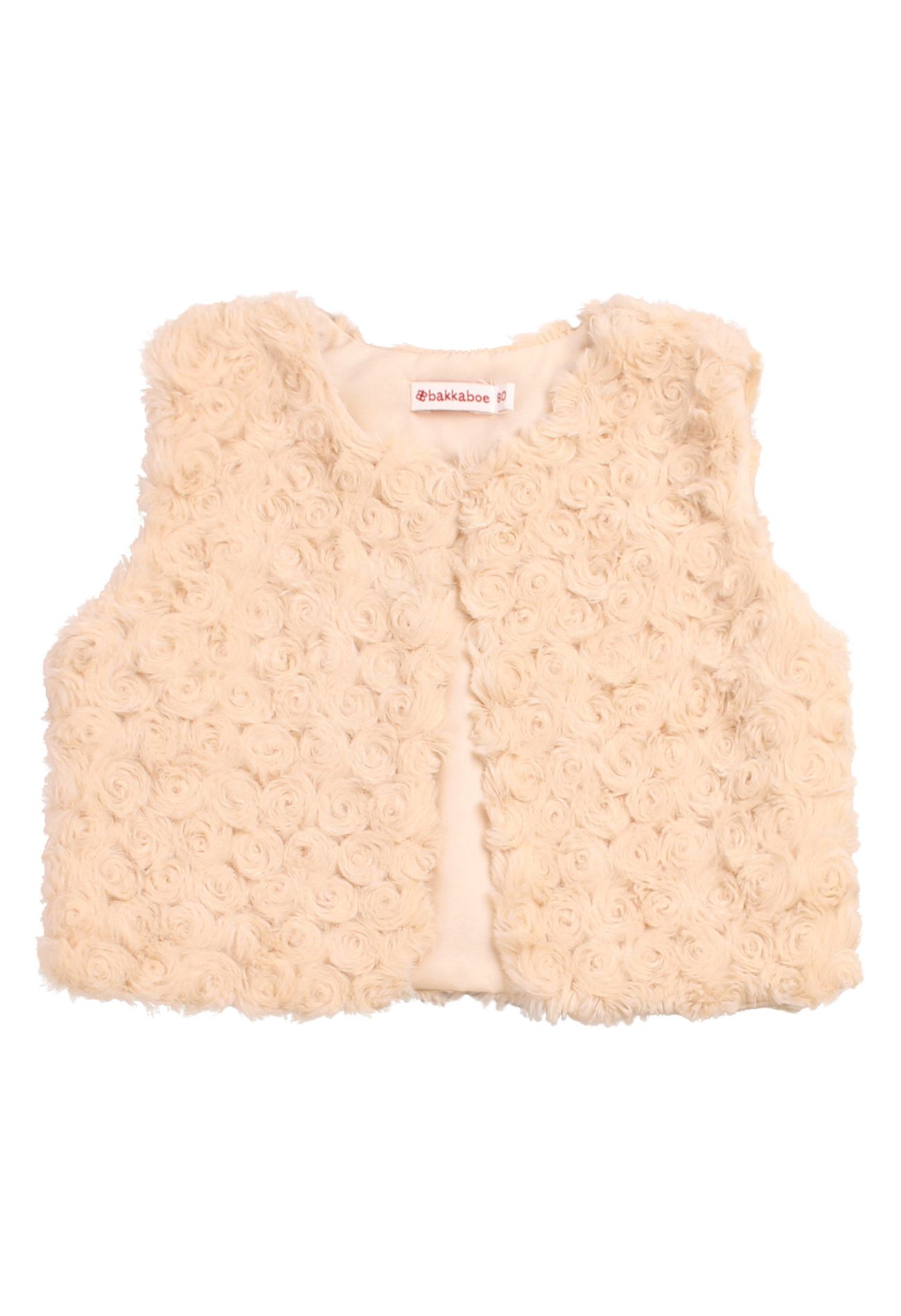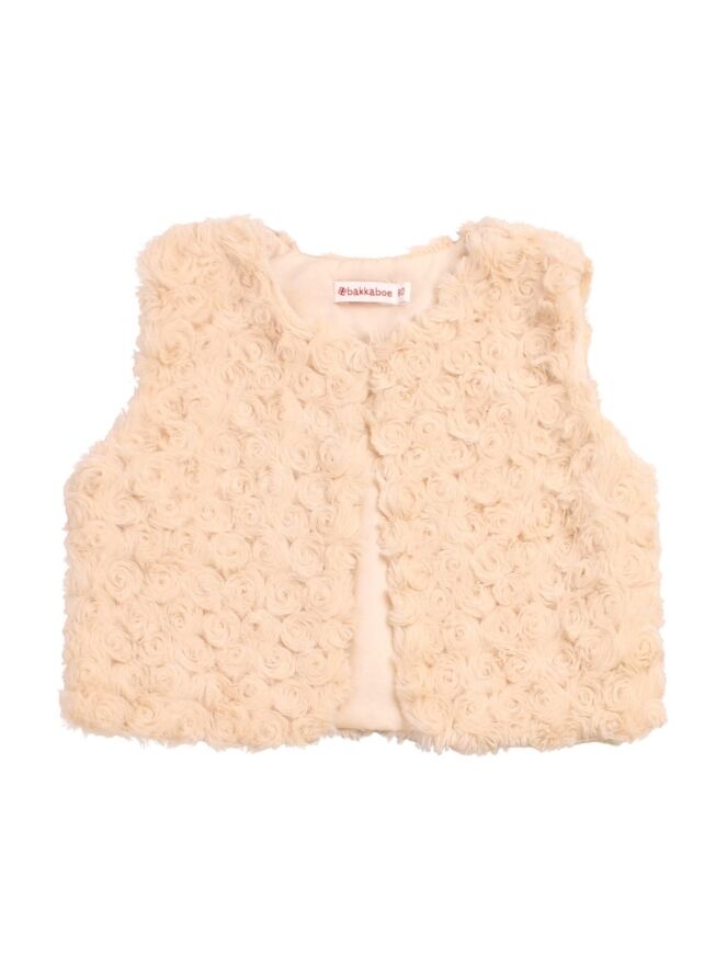 Maak je baby outfit compleet dit super leuke fake fur giletje met knoopje.