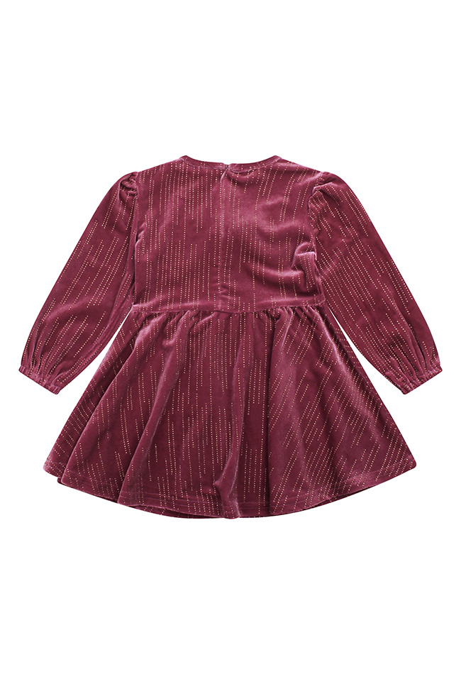 Dit schattige jurkje voor baby meisjes is gemaakt van zachte velvet met een subtiele glitters voor een feestelijke uitstraling. Het jurkje heeft een lieve strik en pofmouwen voor extra schattige details. Perfect voor de feestdagen.