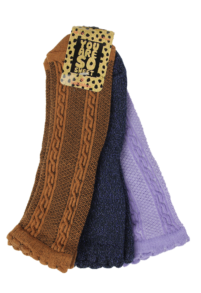 3 paar sokken van Bakkaboe. De sokken hebben een kabel design. Materiaal: 78% katoen, 20% polyamide, 2% elasthan. Wassen op 30 graden, niet bleken, niet in de droger.