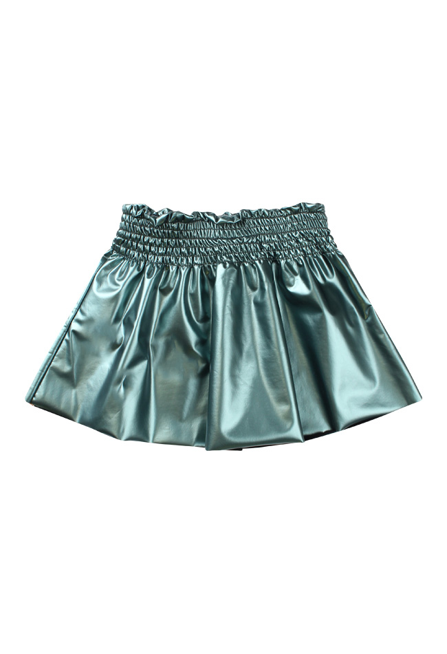 Metallic PU-leren rokje met een elastische smock tailleband. Let op: Dit artikel is gemaakt van delicaat materiaal en is gevoelig voor beschadigingen. Was het artikel apart en binnenstebuiten of gebruik een waszakje. Wees extra voorzichtig met scherpe voorwerpen, zoals sieraden.