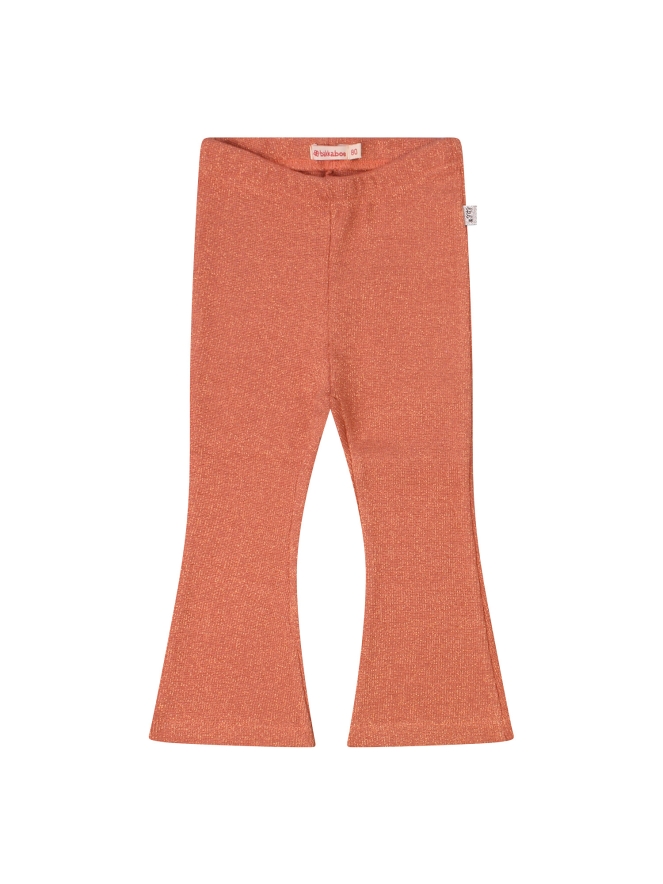 Deze flair voor baby meisjes is nét even anders. Gemaakt van een wat dikkere, comfortabele stof die door het subtiele lurex glitterdraad in goud of brons een luxe, glanzende uitstraling krijgt.