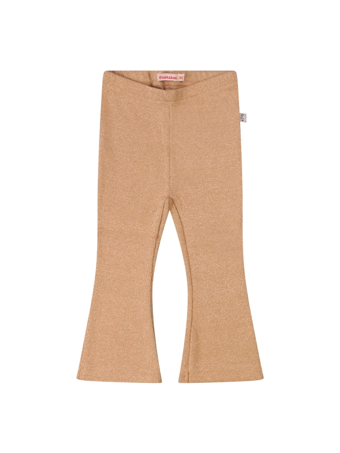 Deze flair voor baby meisjes is nét even anders. Gemaakt van een wat dikkere, comfortabele stof die door het subtiele lurex glitterdraad in goud of brons een luxe, glanzende uitstraling krijgt.