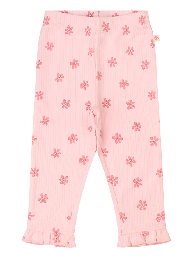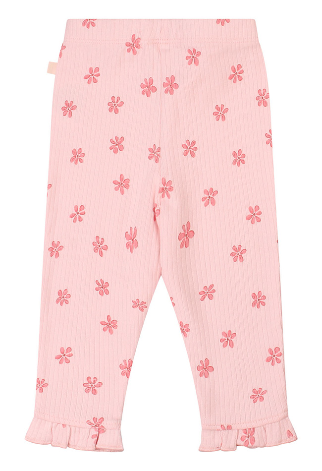 Voor newborn baby meisjes hebben we deze ontzettend leuke rib legging met een mooi bloemetjes patroon. Het broekje heeft een elastiek in de tailleband en een mooie ruche bij de enkel. Erg leuk om te combineren met de andere items uit deze bloem serie.