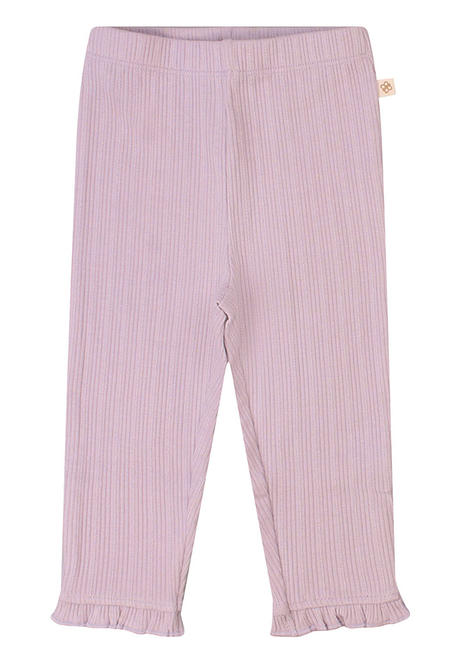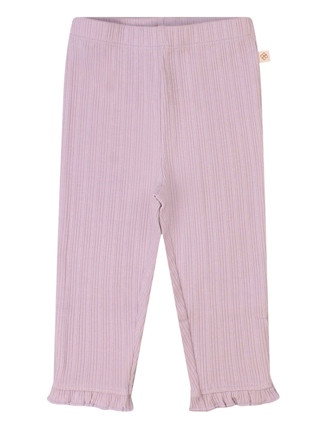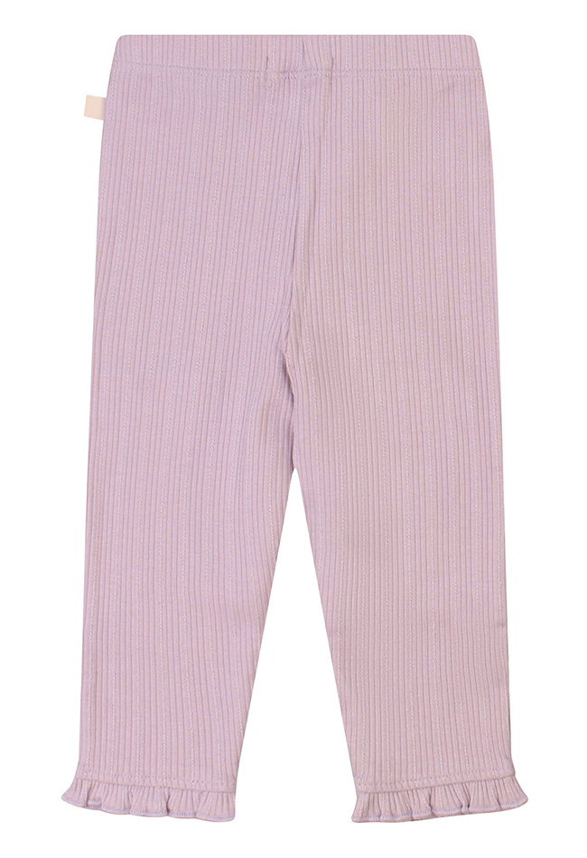 Fijne basic legging met een fijn en sierlijk ribje in de stof. Deze legging voor de pasgeborene is goed rekbaar, zit comfortabel door de elastische tailleband en heeft een mooie ruche rond de enkel.