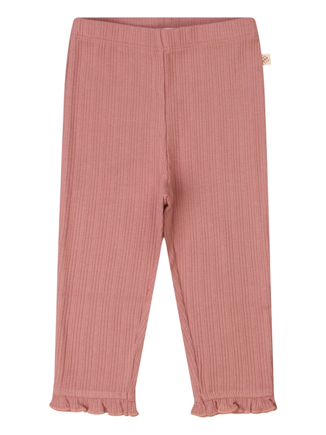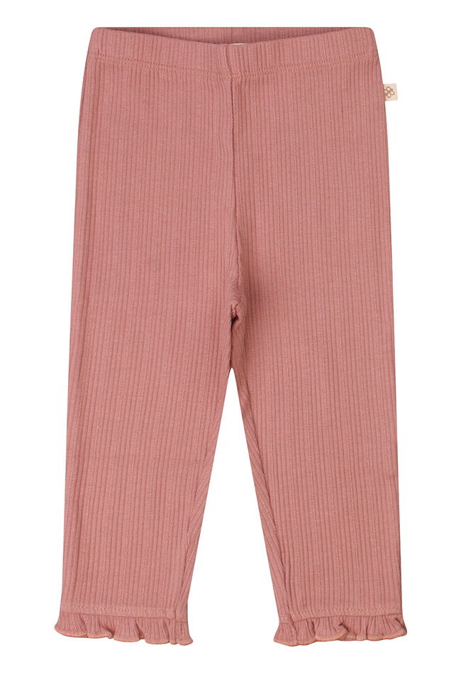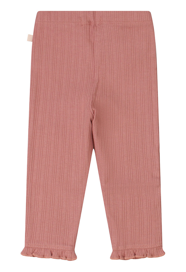 Fijne basic legging met een fijn en sierlijk ribje in de stof. Deze legging voor de pasgeborene is goed rekbaar, zit comfortabel door de elastische tailleband en heeft een mooie ruche rond de enkel.