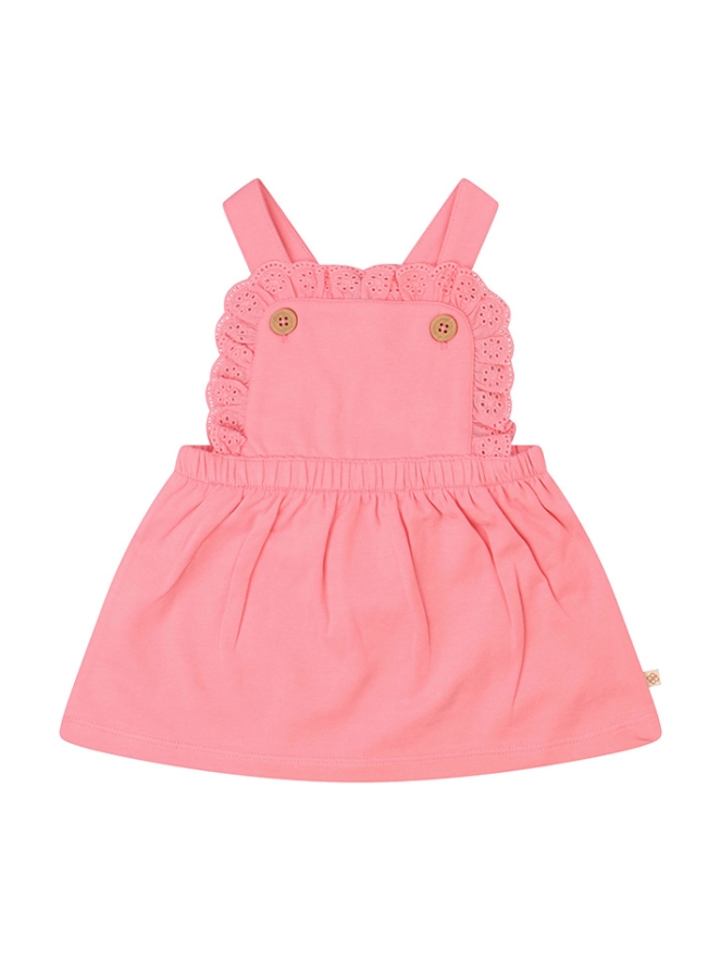 Zoet jurkje van Newborn Bakkaboe met een mooie broderie rand en houtlook knoopjes.
