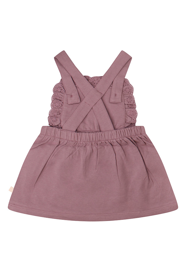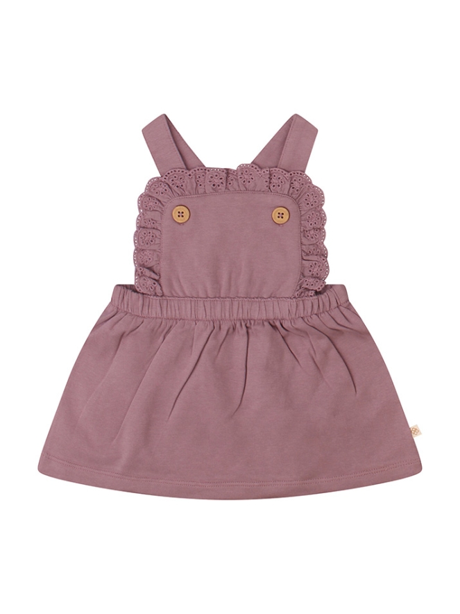 Zoet jurkje van Newborn Bakkaboe met een mooie broderie rand en houtlook knoopjes.