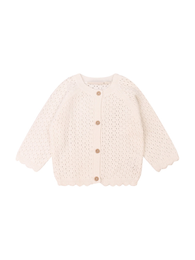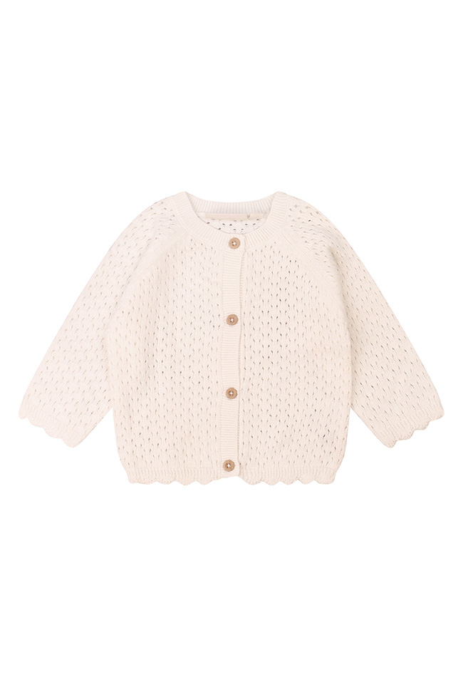 Prachtig vestje van de Bakkaboe Newborn collectie. Dit vestje is gemaakt van Bio katoen garen. Mooi fijn gebreid vestje met een mooi motief. De houtlook knoopjes maken het helemaal af!