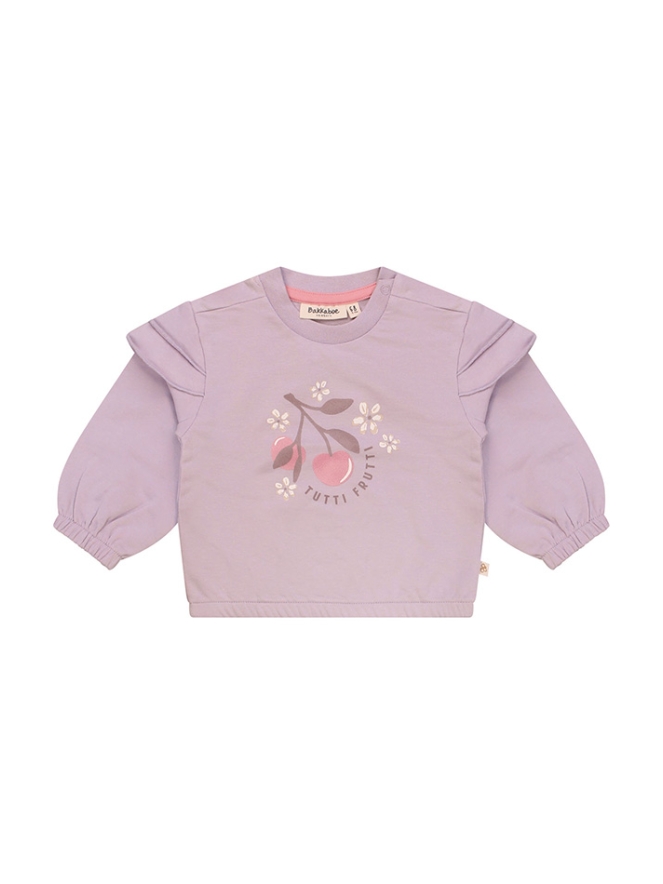 Tutti frutti! Deze zoete sweater van sweatstof heeft naast leuke details ook een mooie print! Makkelijk te combineren met een leuke legging of flair. Mix en match!