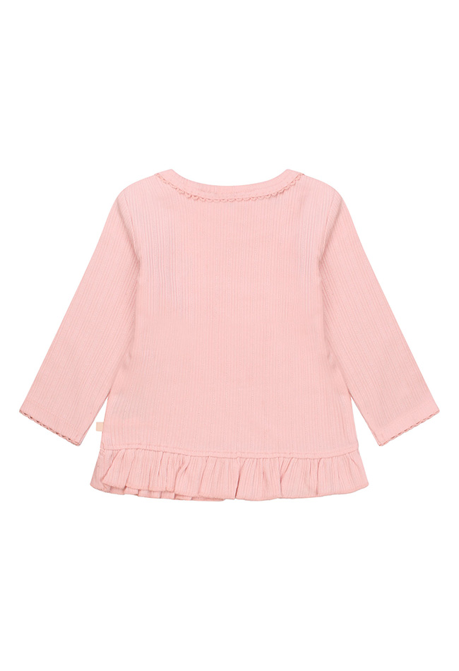 Dit T-shirt met lange mouwen heeft een extra ruche rand in de taille voor een super leuk speels effect! Natuulijk makkelijk te combineren. Mix en match erop los!