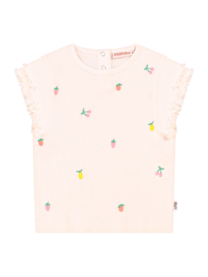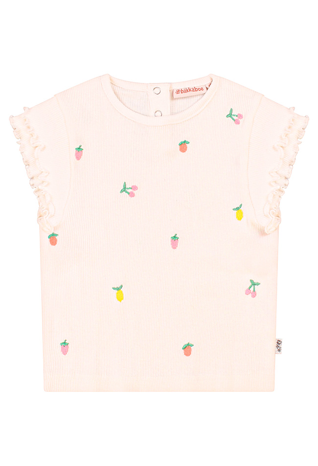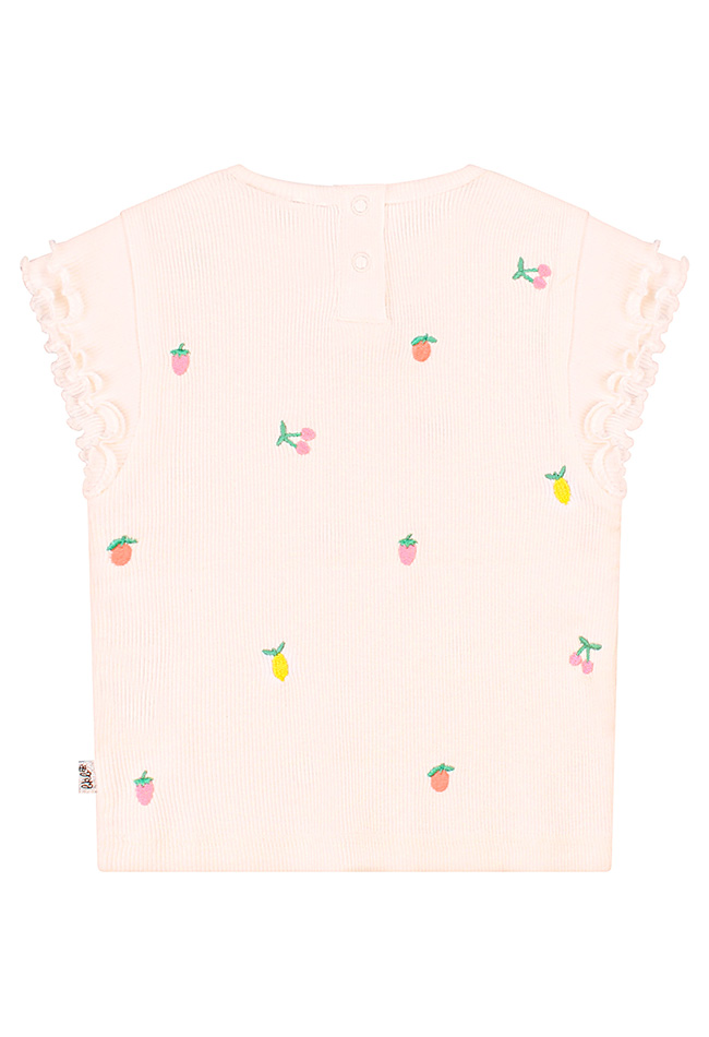 Fruit! Er staat zoveel gezond fruit op dit shirtje dat je spontaan trek krijgt! Zoet is hij zowieso! Van een fijne stretch stof voor veel comfort. Aardbei, kers of mandarijn in dit shirt voel je je fijn!