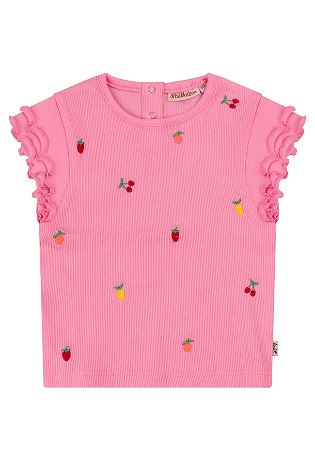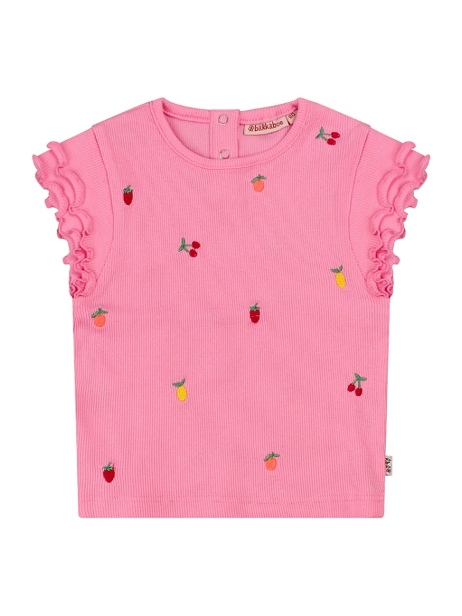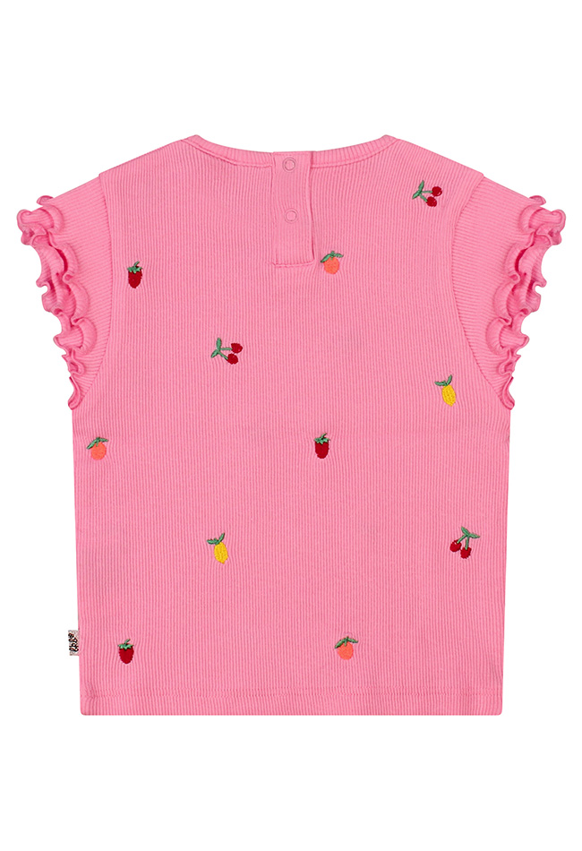 Fruit! Er staat zoveel gezond fruit op dit shirtje dat je spontaan trek krijgt! Zoet is hij zowieso! Van een fijne stretch stof voor veel comfort. Aardbei, kers of mandarijn in dit shirt voel je je fijn!