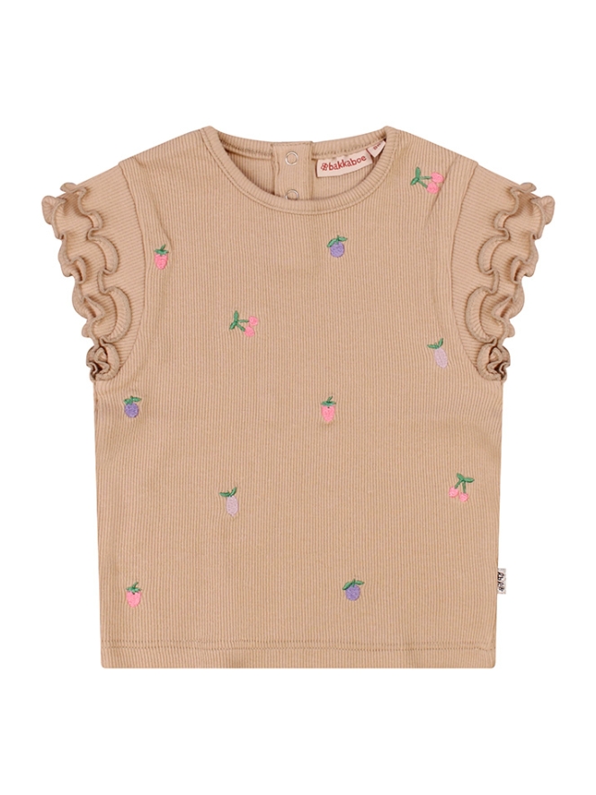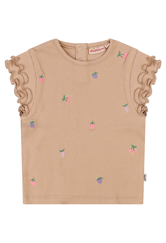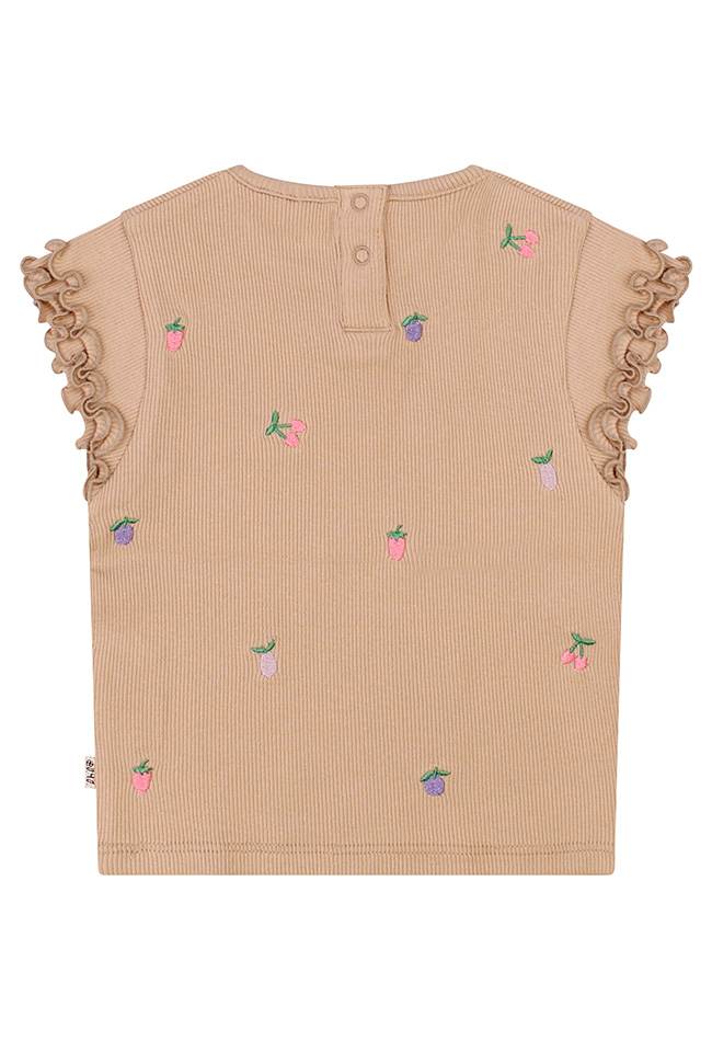 Fruit! Er staat zoveel gezond fruit op dit shirtje dat je spontaan trek krijgt! Zoet is hij zowieso! Van een fijne stretch stof voor veel comfort. Aardbei, kers of mandarijn in dit shirt voel je je fijn!