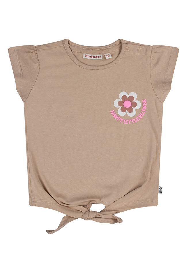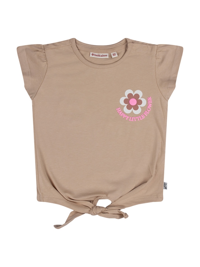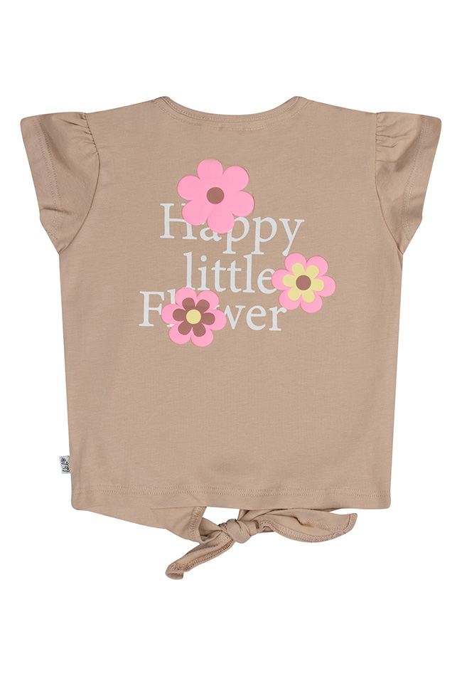 Happy little flower look at this! Dit leuke knoop T-shirtje heeft een vrolijke print voor en achterop. Leuk te dragen op korte broeken of rokjes. You deside!