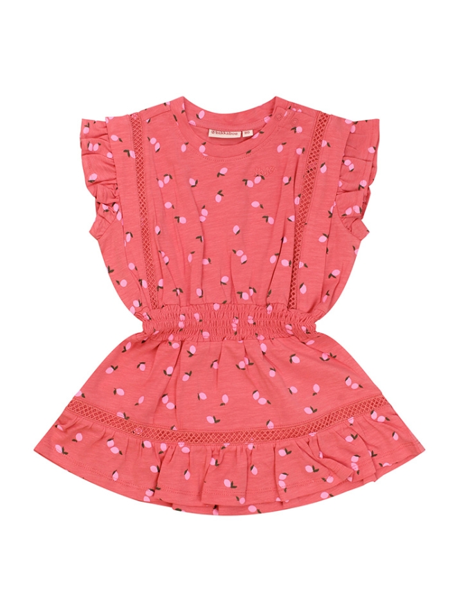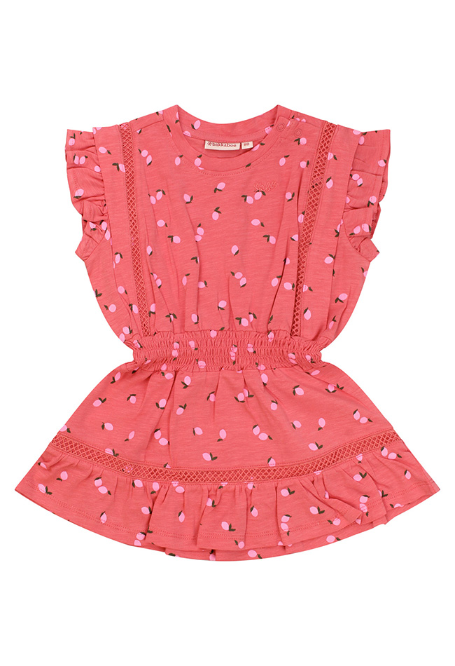 Een lief en fruitig jurkje dat meteen een glimlach oproept. Dat doet dit jurkje zeker! De stof is bedrukt met schattige limoentjes, wat zorgt voor een frisse, zomerse uitstraling.