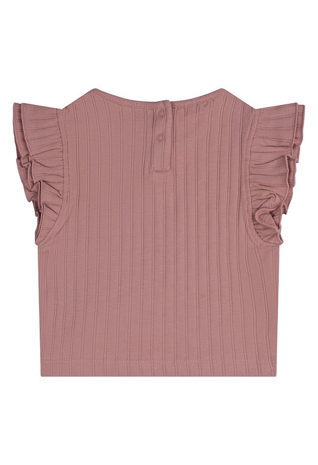 Fancy brede rib shirt met een mooie ruche mouw. Comfortabel te dragen door de flexibiliteit in de stof. Deze shirtjes hebben we in vele verschillende kleurtjes zodat jij eindeloos kunt mixen en matchen.