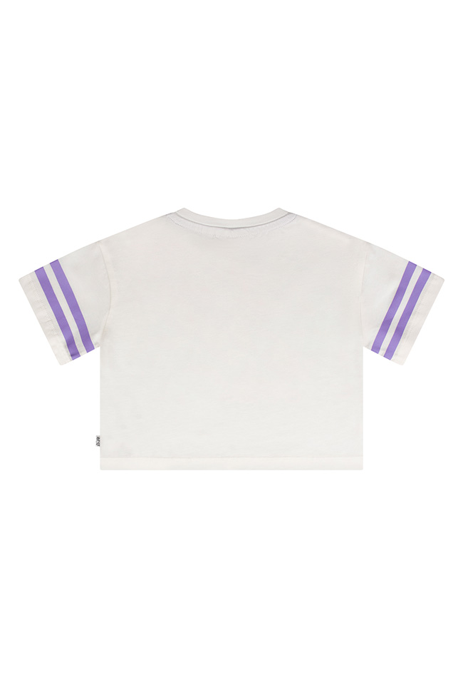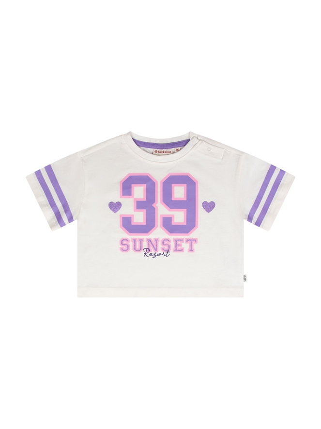 Dit schattige baby meisjes T-shirt in baseball style is perfect voor zonnige dagen. Het sportieve ontwerp wordt gecombineerd met zachte, zomerse kleuren voor een frisse en speelse uitstraling. Ideaal voor kleine fashionista?s die comfortabel én stijlvol de dag door willen. Let op, dit shirt is een boxy fit en valt dus wat wijder.