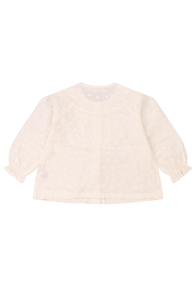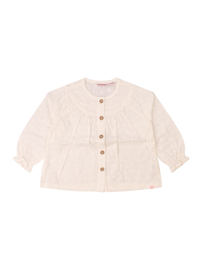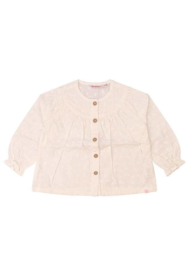Prachtige ruimvallende blouse met een hartjesdesign en houtlook knoopjes. Deze mooie blouse is van 100% katoen in een prachtige natuurlijke kleur.