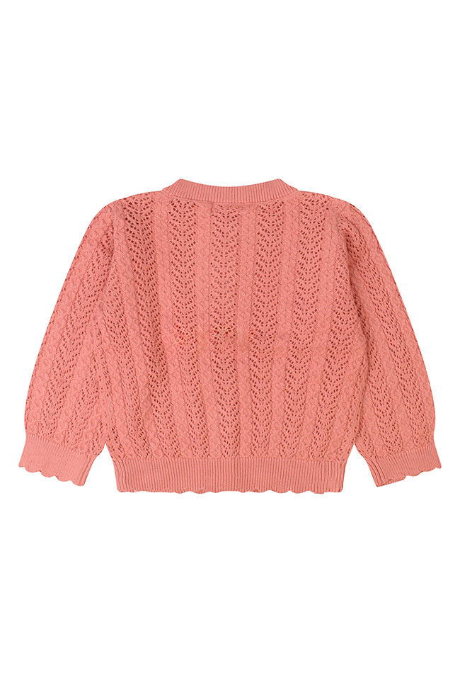 Classy vestje met een fijne kabel in het haakpatroon. De houtlook bloemknoopjes maken het vestje extra zoet en helemaal af.