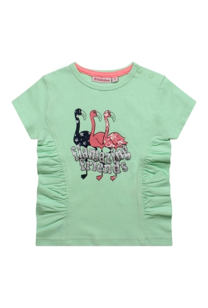 Dit schattige babymeisjes shirt van Bakkaboe is perfect voor dagelijks gebruik en speciale gelegenheden. Gemaakt van zachte jacquard jersey voelt het shirt comfortabel aan op de gevoelige huid van kleintjes. Het shirt heeft een regular fit, korte ruche mouwen en een ronde hals, waardoor hij zowel stijlvol als praktisch is. Een lief klein bloemetje op de borst maakt het ontwerp extra schattig, terwijl de drukknoopjes op de schouder het aan- en uitkleden van je kind makkelijker maken. Het design zorgt ervoor dat het shirt eenvoudig te combineren is met rokjes, broekjes of legging.