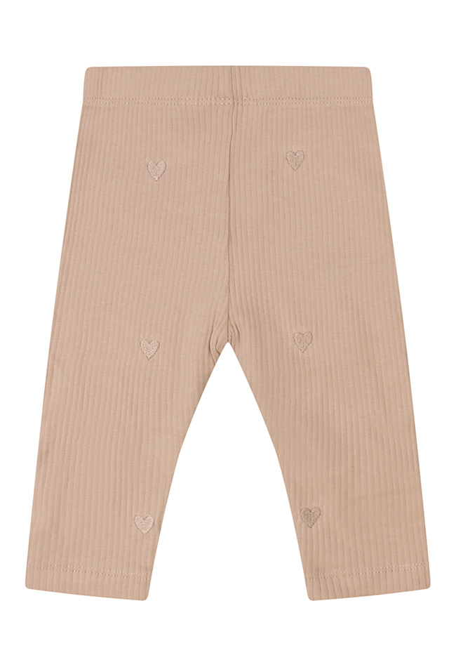 Comfortabele legging voor newborn meisjes met een zoete inslag! Deze rib legging heeft namelijk een hartjesborduursel allover. Liever kunnen we het niet maken.