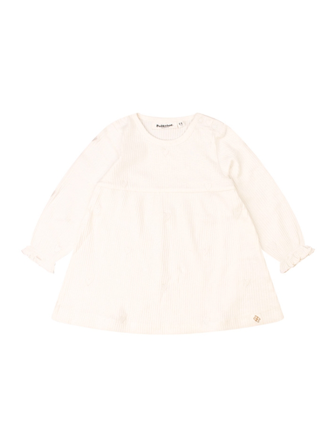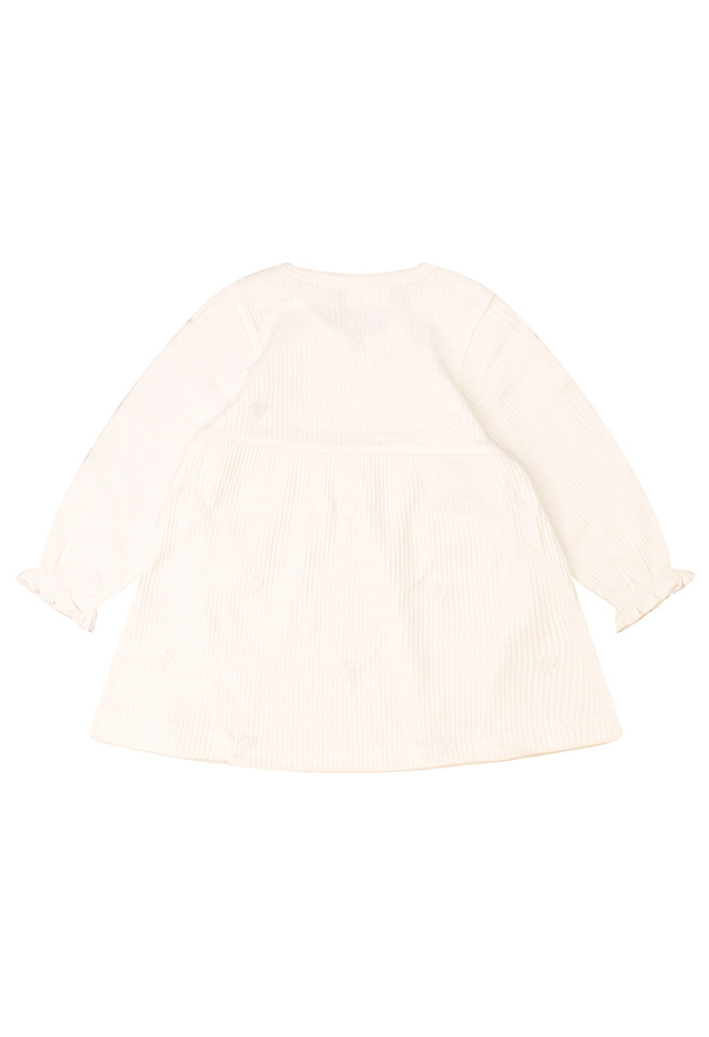 Dit schattige newborn jurkje voor meisjes is perfect voor de allereerste momenten. Het jurkje is afgewerkt met fijne geborduurde hartjes wat zorgt voor een lieve en romantische uitstraling. Gemaakt van een zachte, huidvriendelijke stof die comfortabel aanvoelt op de gevoelige babyhuid. Dankzij de prettige pasvorm heeft je baby alle bewegingsvrijheid, terwijl het jurkje er toch stijlvol uitziet.