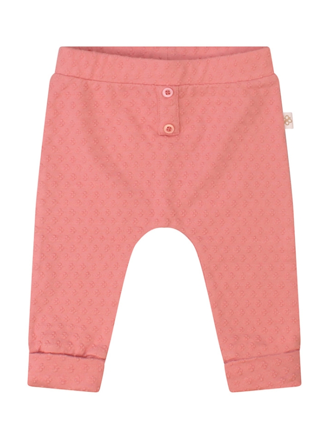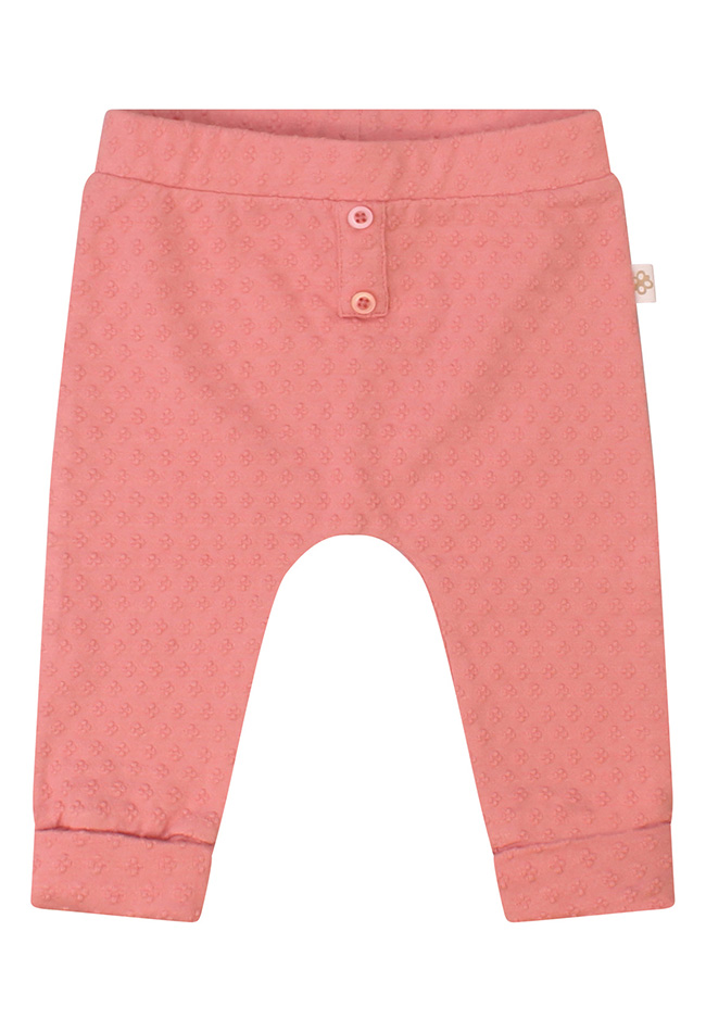 Zacht broekje van jacquard voor newborns vanaf maat 50. Dit broekje heeft een omslagje en 2 sierknoopjes voorop. Leuk te combineren met de bijpassende top met art.nr. Z10404