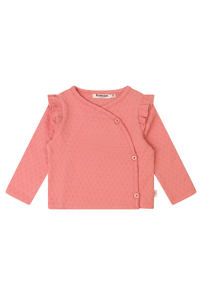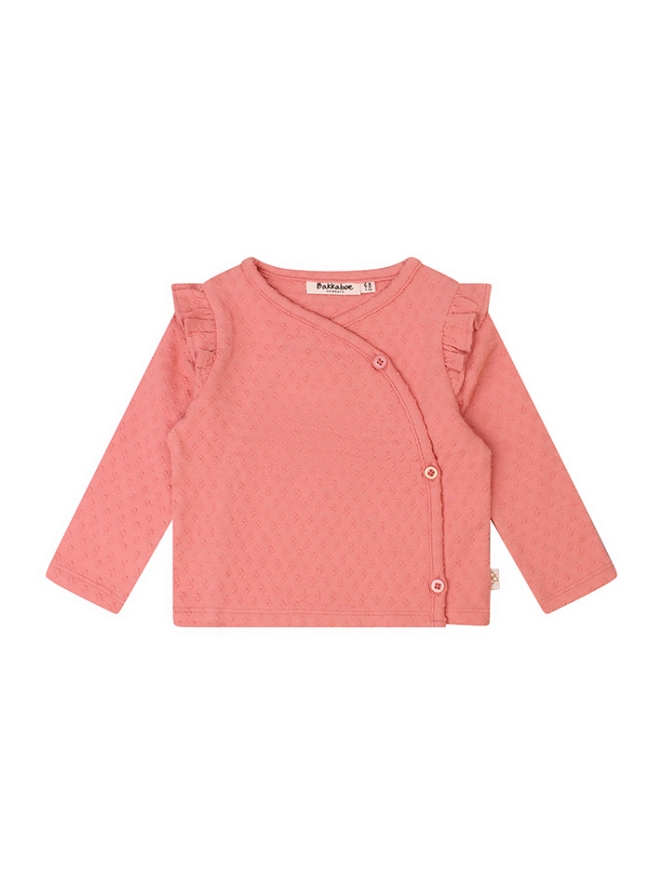 Zachte overslag top die aan de voorkant wordt gesloten met knoopjes. Je kleine meisje wikkel je er zo in. Had je er graag een bijpassend broekje bij gewild? Deze vind je onder art.nr. Z10403