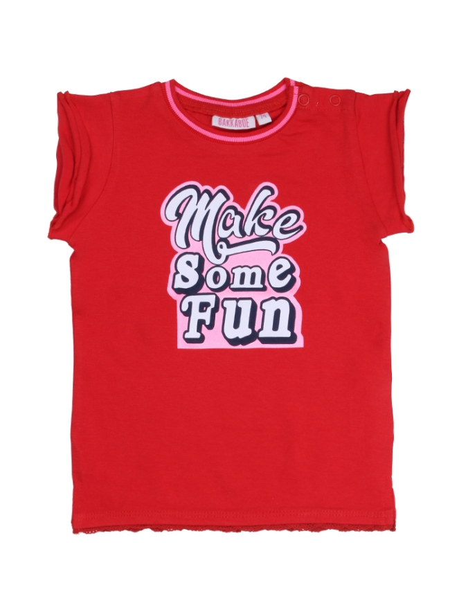 T-shirt voor de baby meisjes van Bakkaboe met een grote tekstprint voorop. Aan de onderkant zit een roezelrandje.Kwaliteit: 95% katoen, 5% elastane.