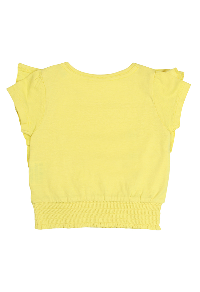T-shirt voor de baby meisjes, het t-shirt heeft ruches langs de voorkant en aan de onderkant zit een elastieken band