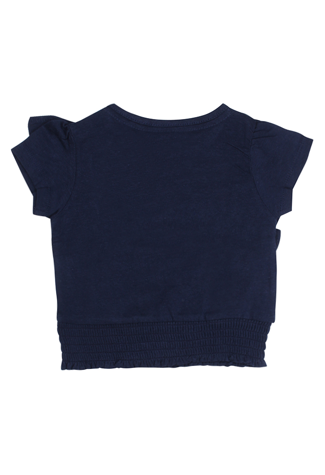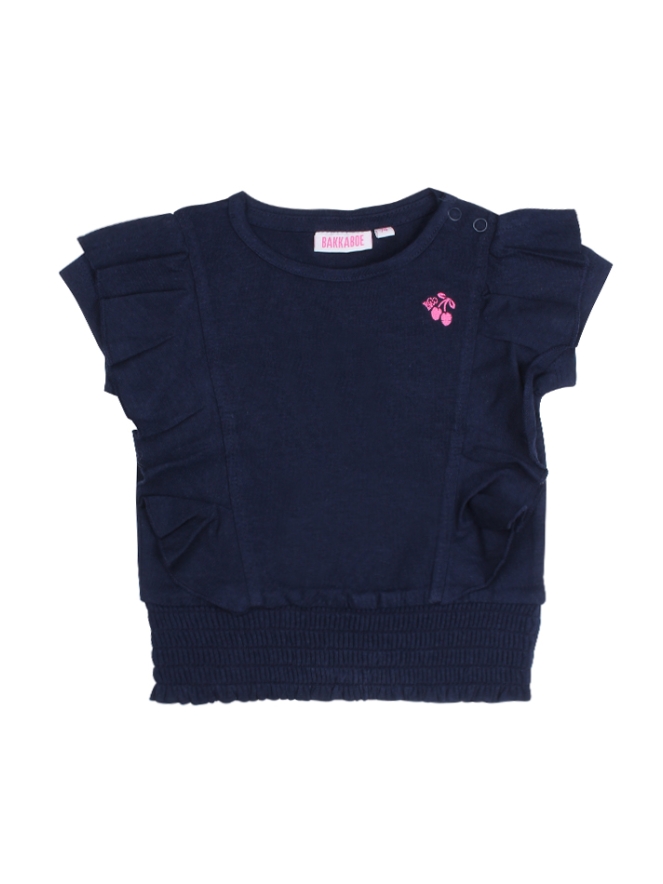 T-shirt voor de baby meisjes, het t-shirt heeft ruches langs de voorkant en aan de onderkant zit een elastieken band