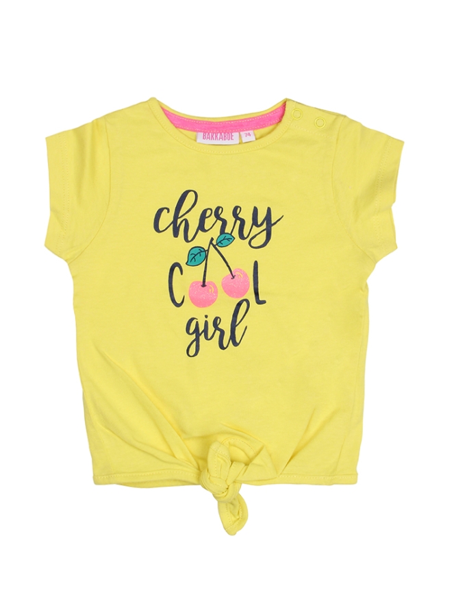 T-shirt met tekst en print voor baby meisjes het t-shirt heeft een knoop detail aan de onderkant. Kersen print met de tekst Cherry cool girl.