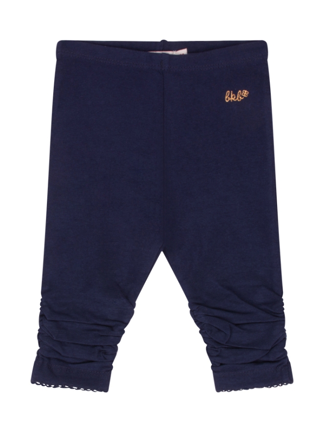 Legging van Bakkaboe. De legging heeft een gerimpeld effect bij de pijpen een iets kortere lengte dan normaal. Materiaal: 95% katoen, 5% elasthan. 30 graden wassen, niet bleken, niet in de droger, lauw strijken.