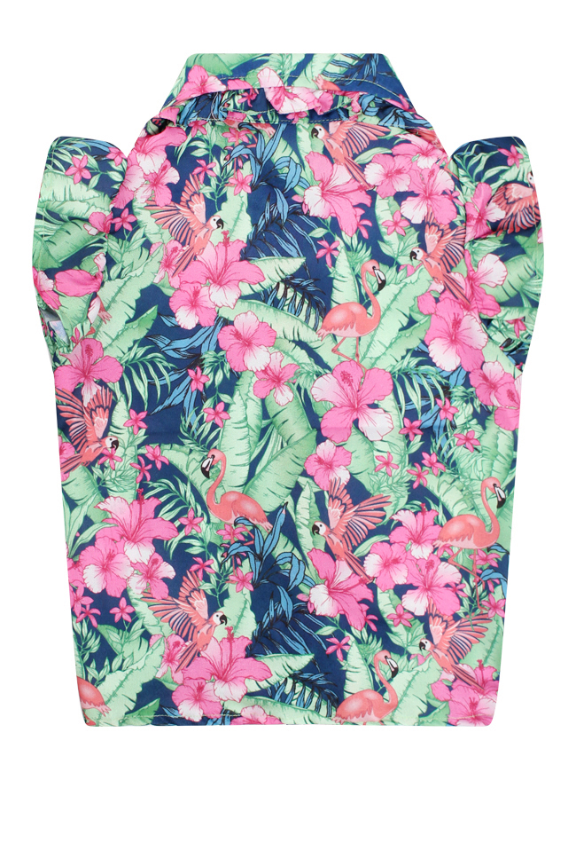 Blouse met een allover tropische print, ronde kraag, vlindermouwen en een strikdetail aan de voorkant.
