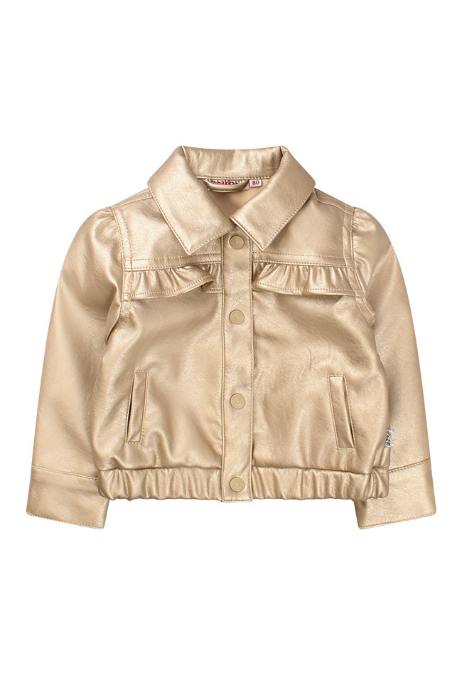 Ook voor baby meisjes is de Metallic trend ontzettend leuk! Dit jack sluit met drukknopen, heeft twee steekzakken en een leuke ruche rand voor over de borst. Is de grootste maat net te klein? Voor meisjes hebben we hetzelde jack onder art.nr. Z90234