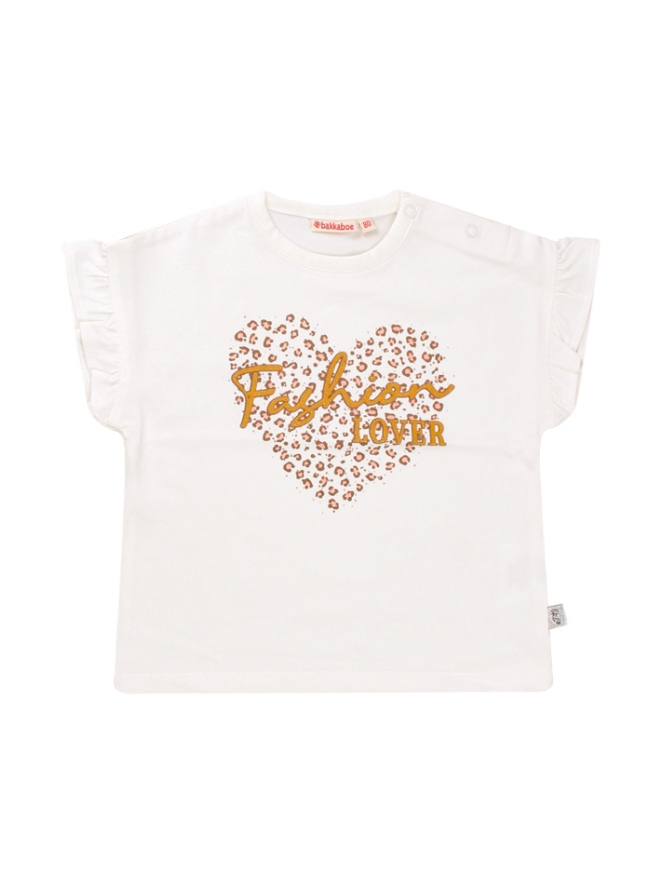 Speciaal voor alle kleine trendy Fashionista's dit leuke shirtje schattige ruche mouwen en een mooie print voorop.
