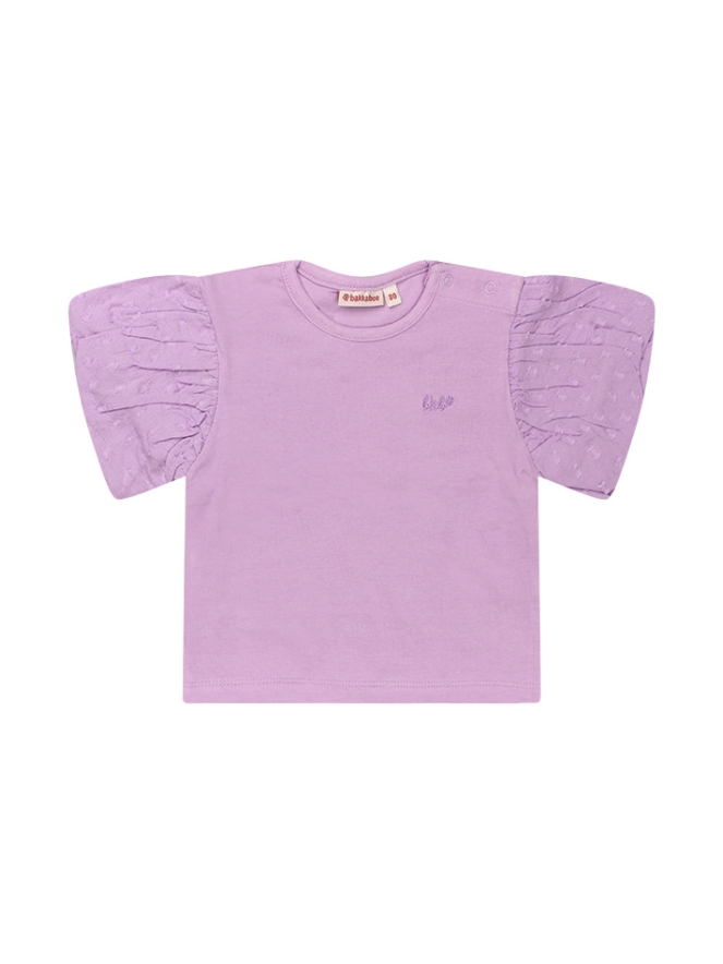 Dit T-shirtje is een speciale! Speciaal door zijn korte ballonmouw van een mooie stof met een relief er in. Je combineert het makkelijk met korte of lange broeken, leuke flairs of wellicht een stoere skort!