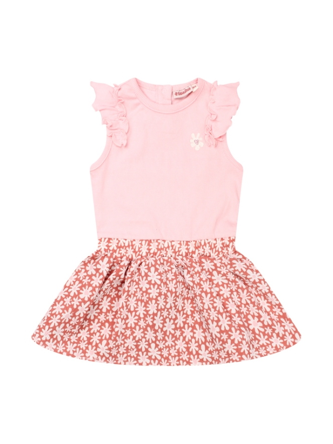 Dit jurkje van Bakkaboe voor baby meisjes bestaat uit een rib top met ruche op de schouders en een crincle bloemetjesrok. Combineer het met een denim giletje of spijkerjasje voor een tijdloze stijlvolle casual look die overal naartoe aan kan.